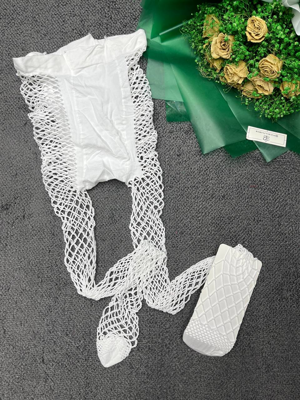 جوراب شلواری فیشنتی سفید-00218033