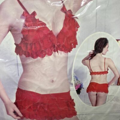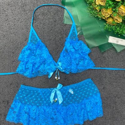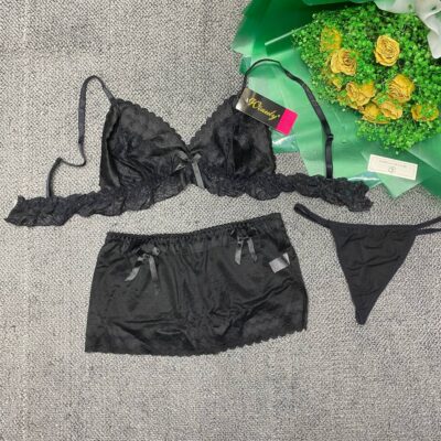 وارداتی سه تیکه سوتین +شورت لامبادا+دامن کوتاه بند رگلاژ دار کیفیت عالی فری سایز ۳۲تا ۴۲